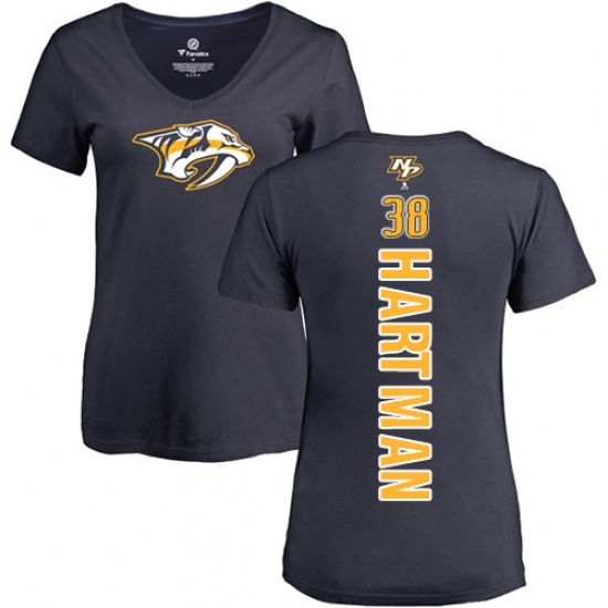 >NHL Women's Adidas Nashville Predators #38 Ryan Hartman Navy Blue Backer T-Shirt