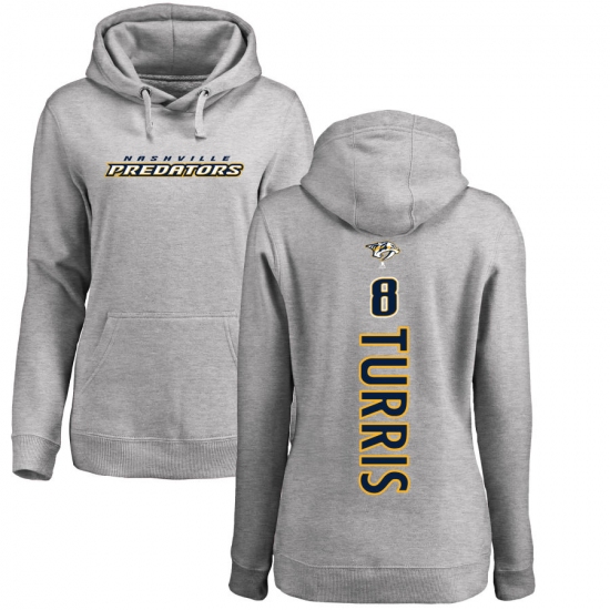 >NHL Women's Adidas Nashville Predators #8 Kyle Turris Ash Backer Pullover Hoodie