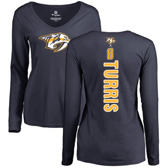>NHL Women's Adidas Nashville Predators #8 Kyle Turris Navy Blue Backer Long Sleeve T-Shirt