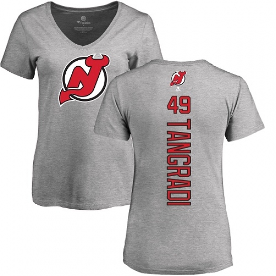 NHL Women's Adidas New Jersey Devils #49 Eric Tangradi Ash Backer T-Shirt