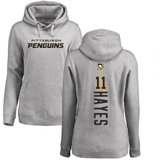 >NHL Women's Adidas Pittsburgh Penguins #11 Jimmy Hayes Ash Backer Pullover Hoodie