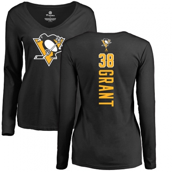 >NHL Women's Adidas Pittsburgh Penguins #38 Derek Grant Black Backer Long Sleeve T-Shirt