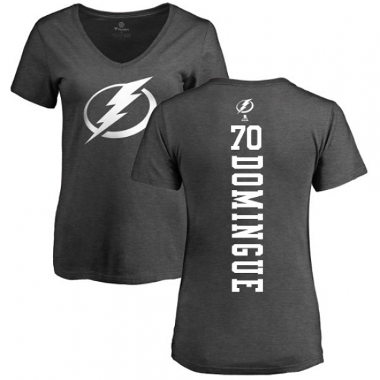 >NHL Women's Adidas Tampa Bay Lightning #70 Louis Domingue Charcoal One Color Backer T-Shirt