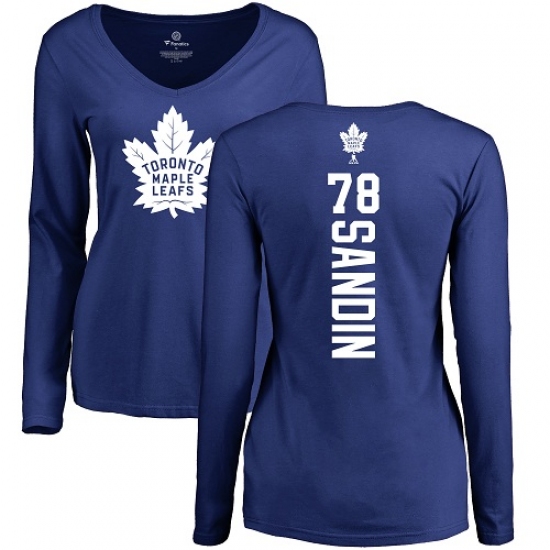 NHL Women's Adidas Toronto Maple Leafs #78 Rasmus Sandin Royal Blue Backer Long Sleeve T-Shirt