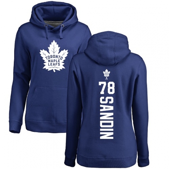 NHL Women's Adidas Toronto Maple Leafs #78 Rasmus Sandin Royal Blue Backer Pullover Hoodie