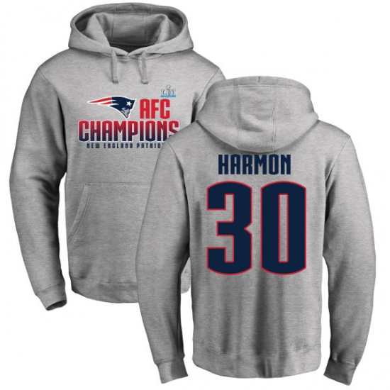 >Nike New England Patriots #30 Duron Harmon Heather Gray 2017 AFC Champions Pullover Hoodie