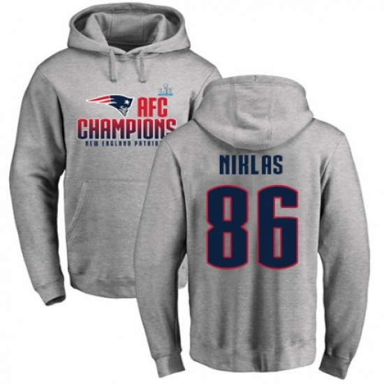 >Nike New England Patriots #86 Troy Niklas Heather Gray 2017 AFC Champions Pullover Hoodie