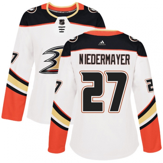 Women's Adidas Anaheim Ducks #27 Scott Niedermayer Authentic White Away NHL Jersey