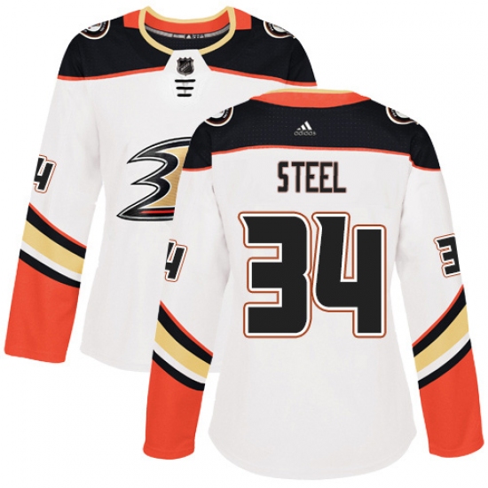 >Women's Adidas Anaheim Ducks #34 Sam Steel Authentic White Away NHL Jersey