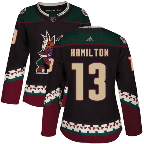 >Women's Adidas Arizona Coyotes #13 Freddie Hamilton Authentic Black Alternate NHL Jersey