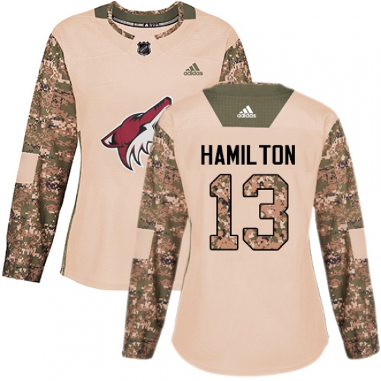 >Women's Adidas Arizona Coyotes #13 Freddie Hamilton Authentic Camo Veterans Day Practice NHL Jersey
