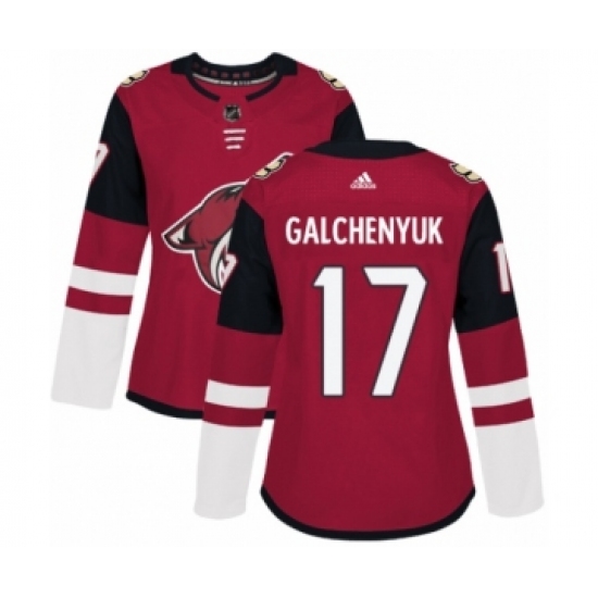 >Women's Adidas Arizona Coyotes #17 Alex Galchenyuk Premier Burgundy Red Home NHL Jersey