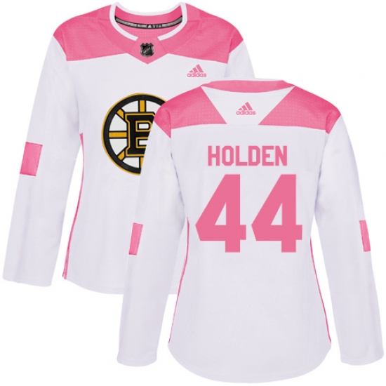 Women's Adidas Boston Bruins #44 Nick Holden Authentic White Pink Fashion NHL Jersey