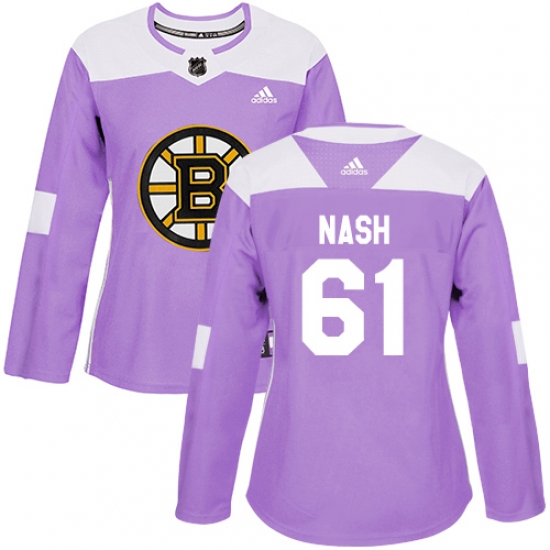 >Women's Adidas Boston Bruins #61 Rick Nash Authentic Purple Fights Cancer Practice NHL Jersey