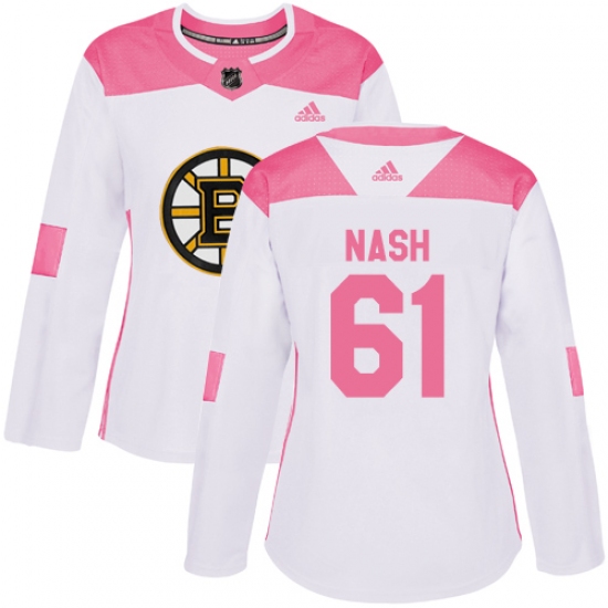 Women's Adidas Boston Bruins #61 Rick Nash Authentic White Pink Fashion NHL Jersey