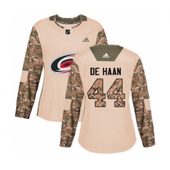 Women's Adidas Carolina Hurricanes #44 Calvin De Haan Authentic Camo Veterans Day Practice NHL Jersey