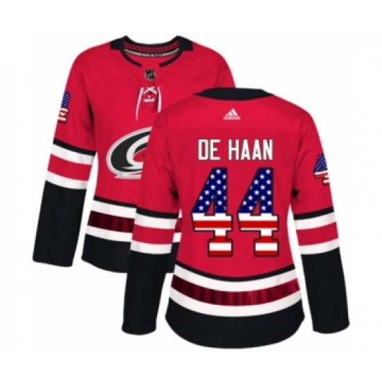 Women's Adidas Carolina Hurricanes #44 Calvin De Haan Authentic Red USA Flag Fashion NHL Jersey