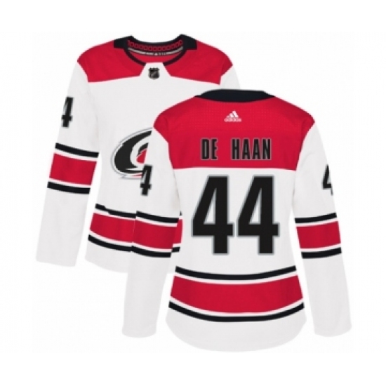 Women's Adidas Carolina Hurricanes #44 Calvin De Haan Authentic White Away NHL Jersey