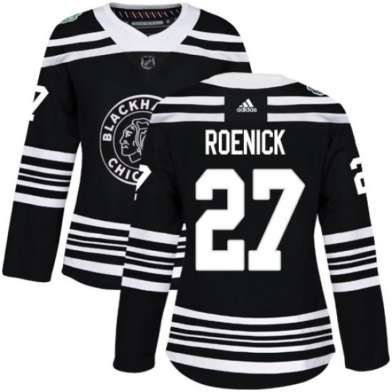 >Women's Adidas Chicago Blackhawks #27 Jeremy Roenick Authentic Black 2019 Winter Classic NHL Jersey