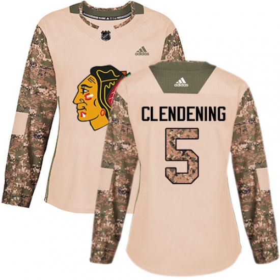 >Women's Adidas Chicago Blackhawks #5 Adam Clendening Authentic Camo Veterans Day Practice NHL Jersey