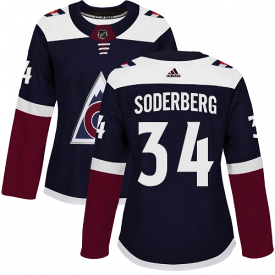 >Women's Adidas Colorado Avalanche #34 Carl Soderberg Authentic Navy Blue Alternate NHL Jersey