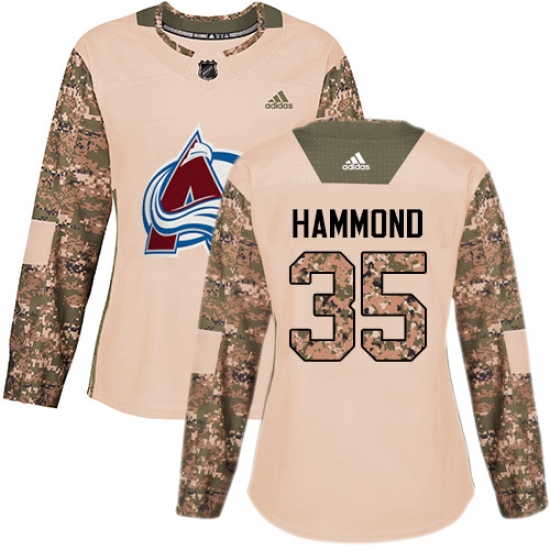 >Women's Adidas Colorado Avalanche #35 Andrew Hammond Authentic Camo Veterans Day Practice NHL Jersey