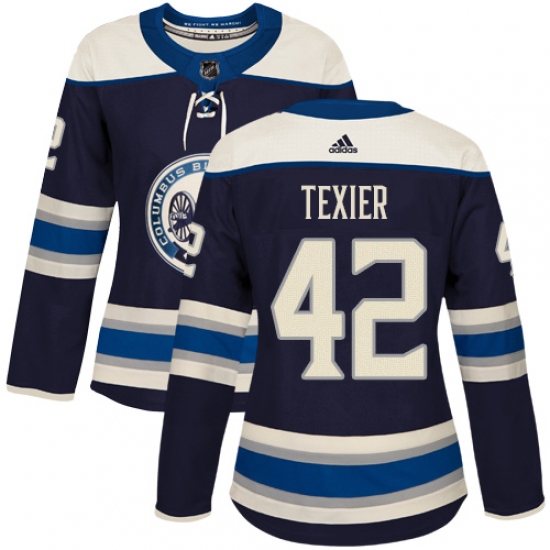 Women's Adidas Columbus Blue Jackets #42 Alexandre Texier Authentic Navy Blue Alternate NHL Jersey