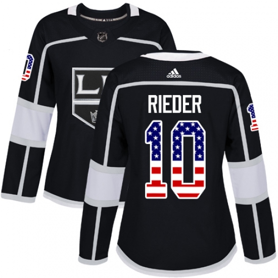 >Women's Adidas Los Angeles Kings #10 Tobias Rieder Authentic Black USA Flag Fashion NHL Jersey
