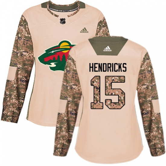 Women's Adidas Minnesota Wild #15 Matt Hendricks Authentic Camo Veterans Day Practice NHL Jersey