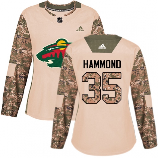 Women's Adidas Minnesota Wild #35 Andrew Hammond Authentic Camo Veterans Day Practice NHL Jersey