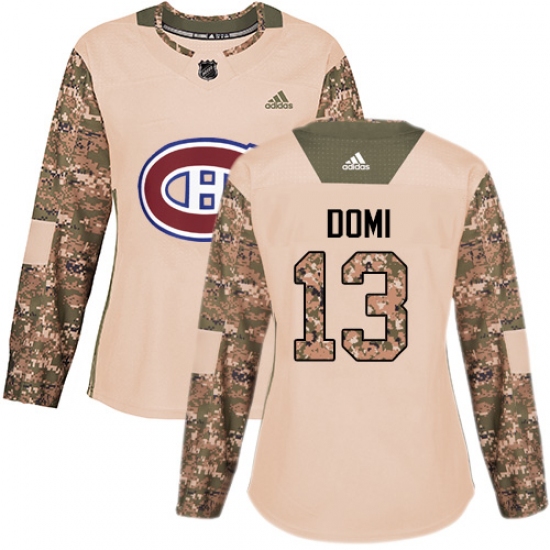 >Women's Adidas Montreal Canadiens #13 Max Domi Authentic Camo Veterans Day Practice NHL Jersey
