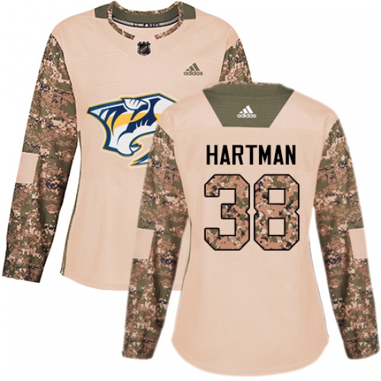 >Women's Adidas Nashville Predators #38 Ryan Hartman Authentic Camo Veterans Day Practice NHL Jersey