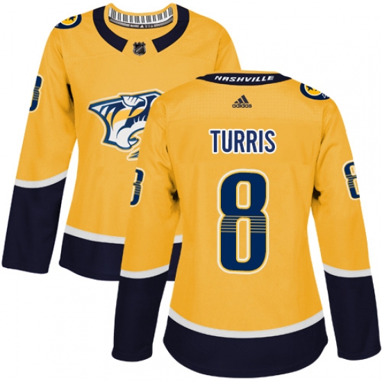 Women's Adidas Nashville Predators #8 Kyle Turris Authentic Gold Home NHL Jersey