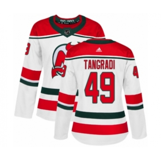 >Women's Adidas New Jersey Devils #49 Eric Tangradi Authentic White Alternate NHL Jersey