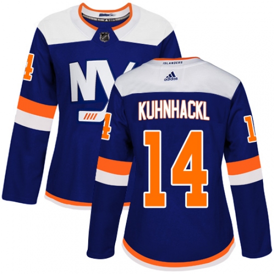 >Women's Adidas New York Islanders #14 Tom Kuhnhackl Premier Blue Alternate NHL Jersey