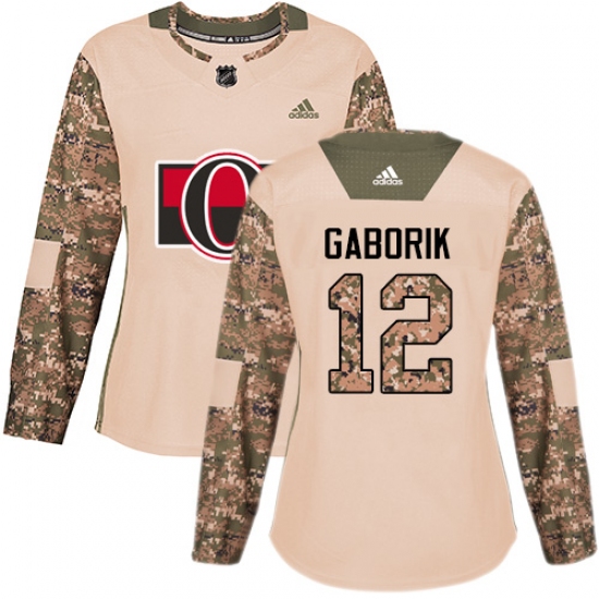 Women's Adidas Ottawa Senators #12 Marian Gaborik Authentic Camo Veterans Day Practice NHL Jersey