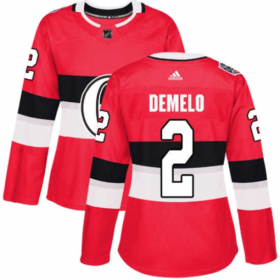 Women's Adidas Ottawa Senators #2 Dylan DeMelo Authentic Red 2017 100 Classic NHL Jersey