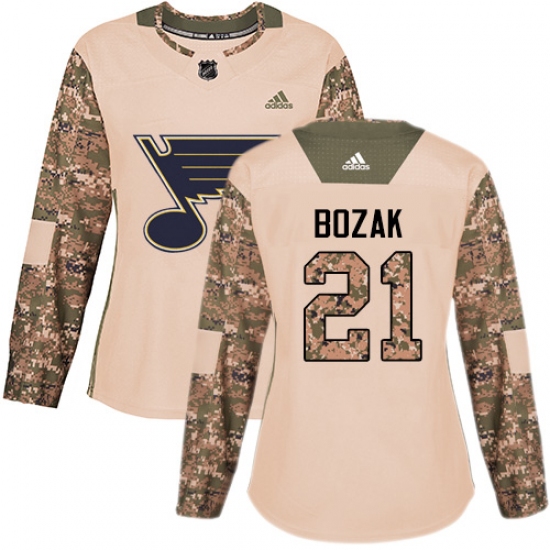 >Women's Adidas St. Louis Blues #21 Tyler Bozak Authentic Camo Veterans Day Practice NHL Jersey