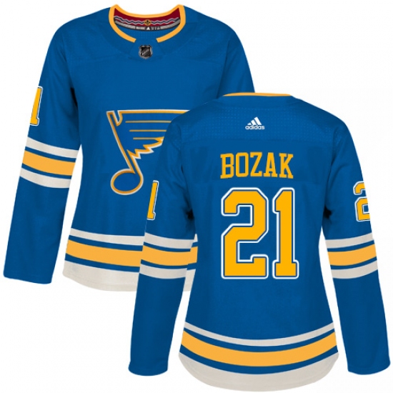 Women's Adidas St. Louis Blues #21 Tyler Bozak Authentic Royal Blue Home NHL Jersey