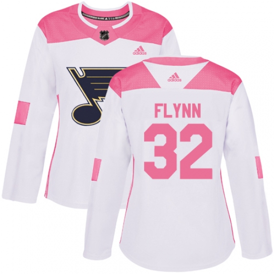 >Women's Adidas St. Louis Blues #32 Brian Flynn Authentic White Pink Fashion NHL Jersey