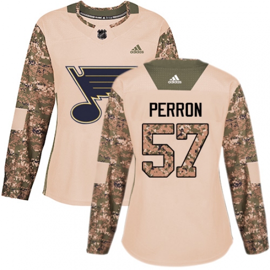 >Women's Adidas St. Louis Blues #57 David Perron Authentic Camo Veterans Day Practice NHL Jersey