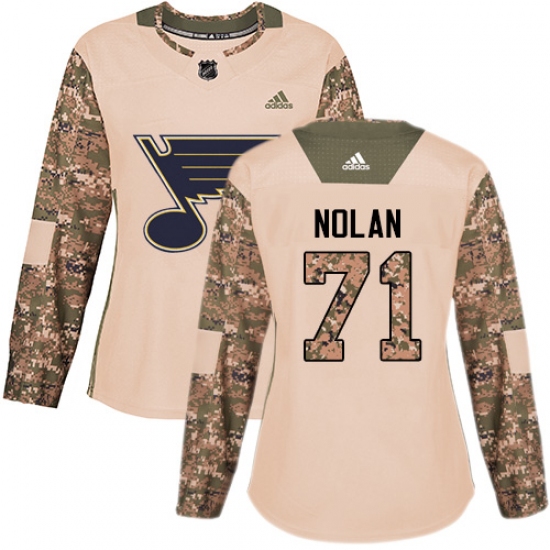 >Women's Adidas St. Louis Blues #71 Jordan Nolan Authentic Camo Veterans Day Practice NHL Jersey