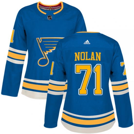 Women's Adidas St. Louis Blues #71 Jordan Nolan Authentic Navy Blue Alternate NHL Jersey
