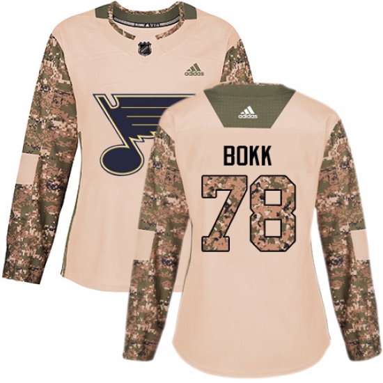 Women's Adidas St. Louis Blues #78 Dominik Bokk Authentic Camo Veterans Day Practice NHL Jersey