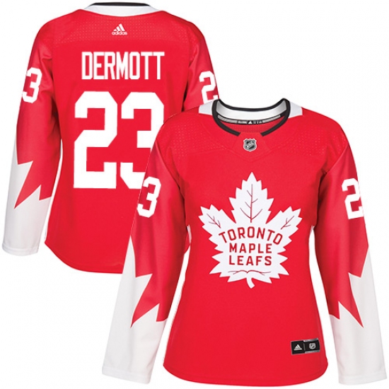 Women's Adidas Toronto Maple Leafs #23 Travis Dermott Authentic Red Alternate NHL Jersey