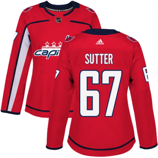 >Women's Adidas Washington Capitals #67 Riley Sutter Authentic Red Home NHL Jersey