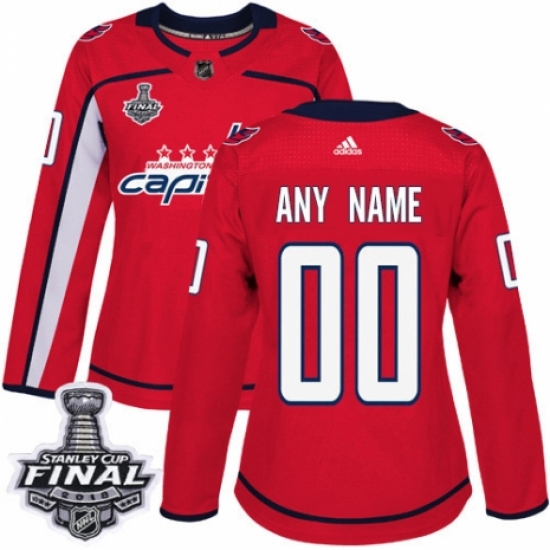 Women's Adidas Washington Capitals Customized Authentic Red Home 2018 Stanley Cup Final NHL Jersey
