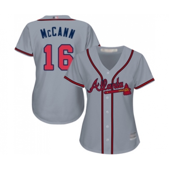 Women's Atlanta Braves #16 Brian McCann Replica Grey Road Cool Base Baseball Jersey