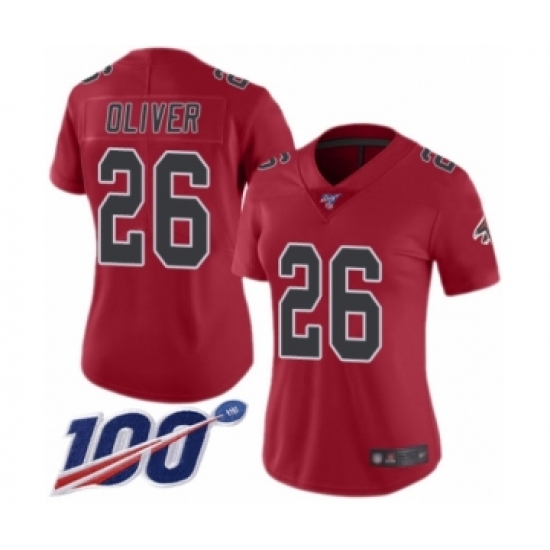 >Women's Atlanta Falcons #26 Isaiah Oliver Limited Red Rush Vapor Untouchable 100th Season Football Jersey