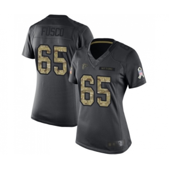 >Women's Atlanta Falcons #65 Brandon Fusco Limited Black 2016 Salute to Service Football Jersey